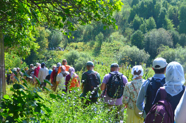 Протяженность пути – 8 километров. Участники крестного хода выходят из храма и идут вдоль берега реки Кама, затем по дамбе выходят к реке Мулянка, продолжают свой путь по лесу вдоль реки и переправляются на противоположный берег к месту подвига преподобного Трифона.