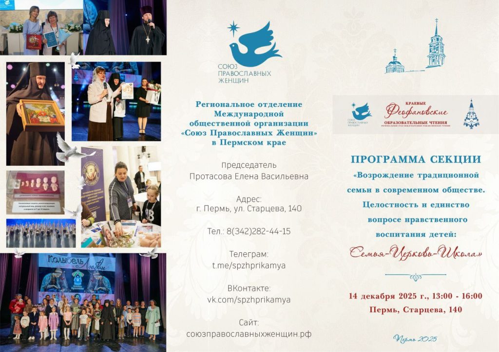 Приглашаем вас принять участие в XXI краевых Феофановских образовательных чтениях 2025 года и 14 декабря посетить секцию «Возрождение традиционной семьи в современном обществе. Целостность и единство в вопросе нравственного воспитания детей: Семья, Церковь, Школа».
