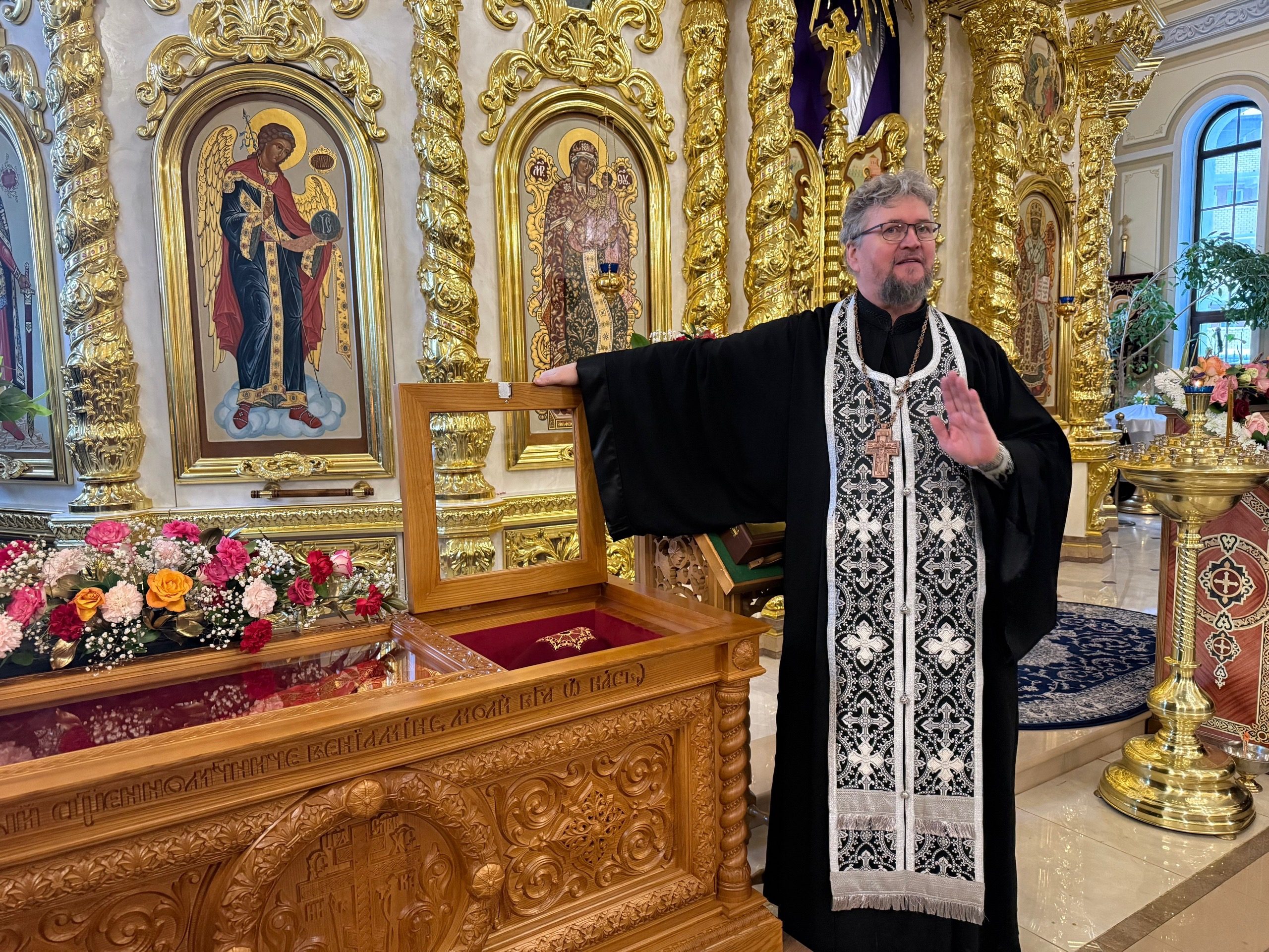 По окончания молебна педагоги и учащиеся школы поклонились честным мощам святого.